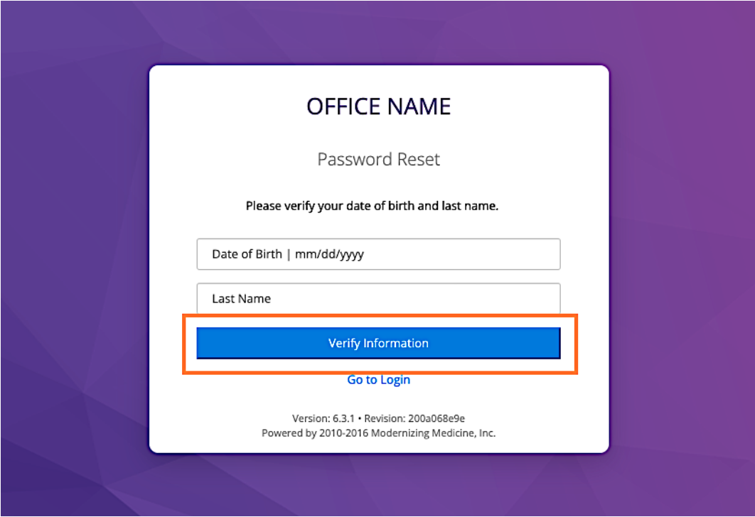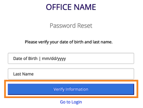 You will be directed to the portal website, where you will be prompted to verify your identity by entering your Date of Birth and Last Name. Once entered, select Verify Information.
