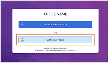 - Select Continue as Patient.