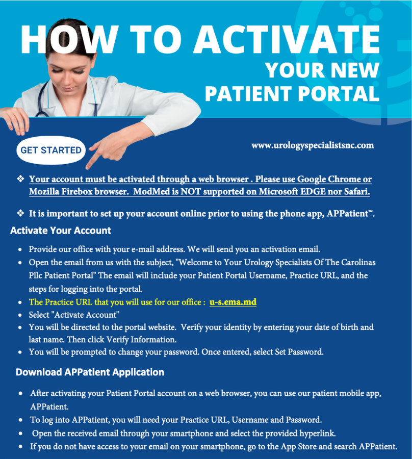 Welcome to the Urology Specialists of the Carolinas Patient Portal