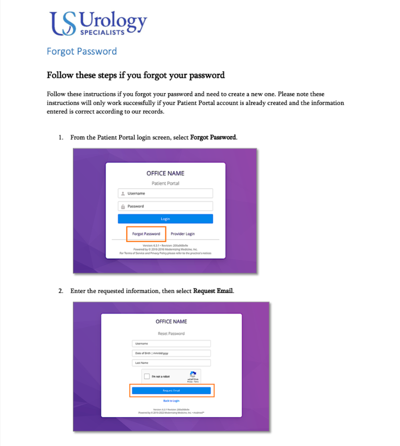 - When your appointment was made, you received an email from us with the subject, “Welcome to Your Urology Specialists Of The Carolinas Pllc Patient Portal”. PLEASE BE AWARE THAT THE EMAIL IS ONLY VALID FOR 72 HOURS. If you need the email resent, Please Contact Us Here